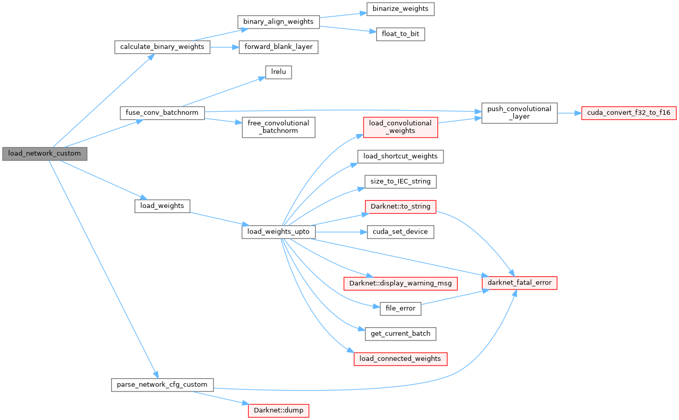 | DarknetNetworkPtr | load_network_custom (const char *cfg, const char *weights, int clear, int batch) |