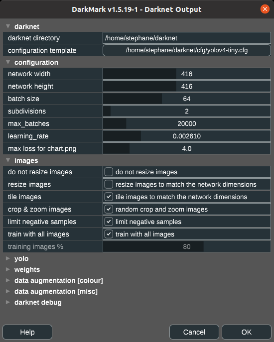 [net] section at the top of the .cfg file, e.g., 416x416 or 608x608. [FAQ] 1920x1080. Darknet only cares about the network dimensions, and has no concept of the other two. (While people looking at images typically ignore the network dimensions and only notice the other two!)