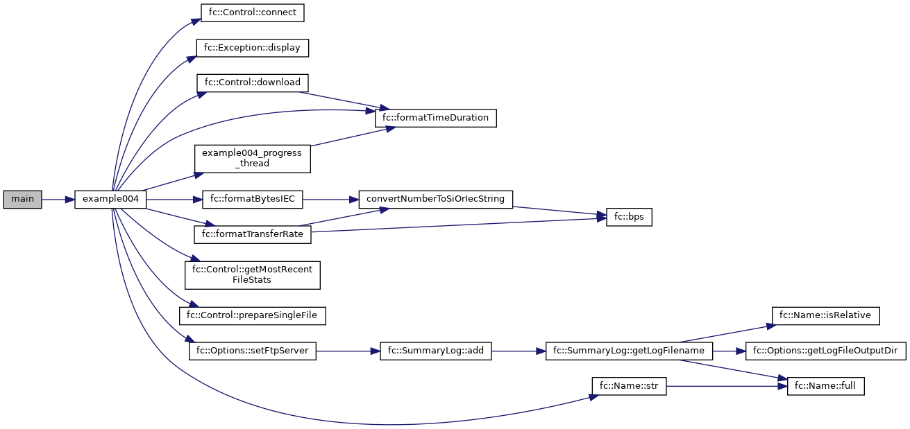 References fc::TransferStats::bitsPerSecondAverageTransferRate, fc::Control::connect(), fc::Exception::display(), fc::Control::download(), example004_progress_thread(), fc::formatBytesIEC(), fc::formatTimeDuration(), fc::formatTransferRate(), fc::Control::getMostRecentFileStats(), fc::kEthernet, fc::kUdp, fc::TransferStats::localFilename, fc::TransferStats::localMd5, password, fc::TransferStats::payloadBytesTransferred, fc::Control::prepareSingleFile(), fc::TransferStats::remoteFilename, fc::TransferStats::remoteMd5, serverIP, fc::Options::setFtpServer(), showProgress, stats, fc::Name::str(), fc::TransferStats::timeTransferBegan, fc::TransferStats::timeTransferFinished, and username.