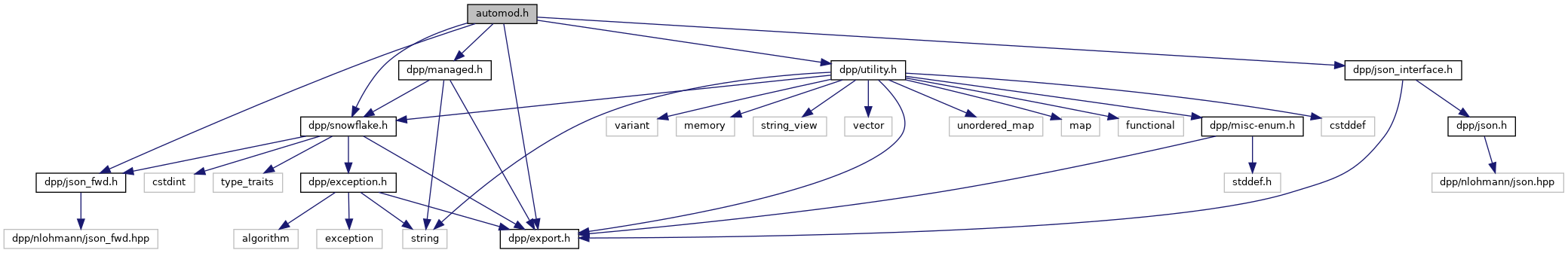 #include <dpp/export.h>#include <dpp/snowflake.h>#include <dpp/managed.h>#include <dpp/utility.h>#include <dpp/json_fwd.h>#include <dpp/json_interface.h>