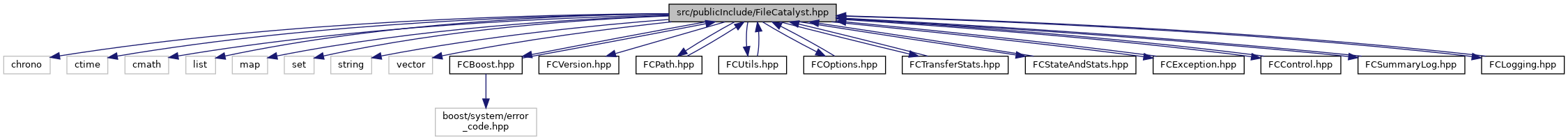 FileCatalyst.hpp is the central public include file for FC++. By including this header file, all other necessary Boost, STL, and various C++ header files required for FC++ will then be included.